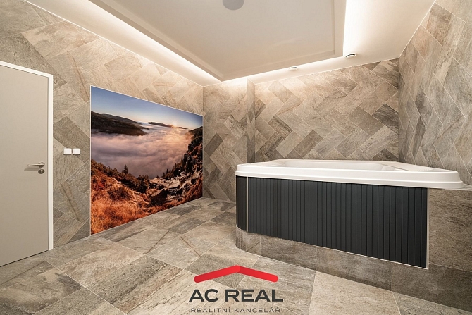 Technický standard: čipový vstupní systém, podlahové topení s ovládáním přes mobil, venkovní žaluzie, centrální rekuperace, dřevěné podlahy Kährs, koupelny: Villeroy and Boch, Kaldewei, Hansgrohe.