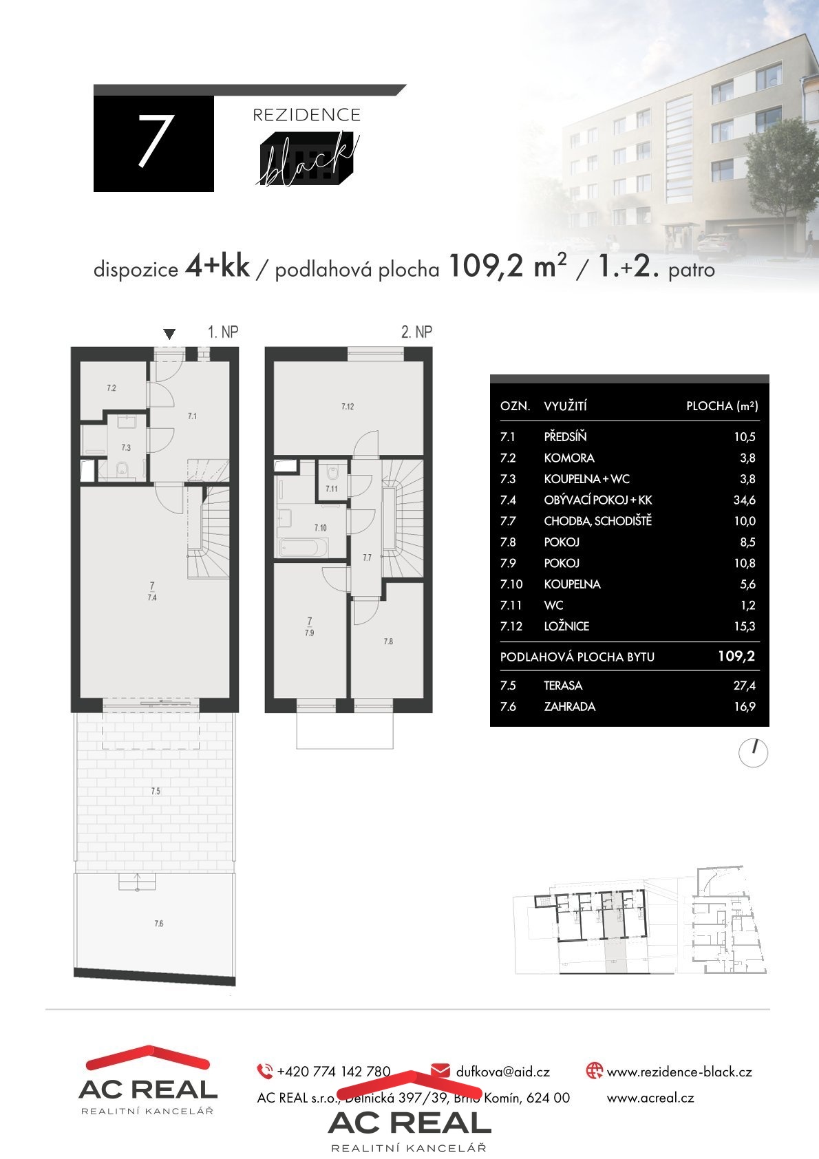 Prodej mezonetového bytu 4+kk, 109,2 m² se zahradou - Brno (1.7)